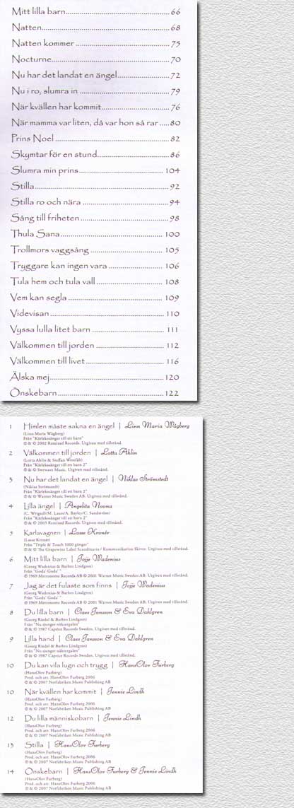 Obs! Nedersta sidan visar innehållet på den medföljande CD:n.